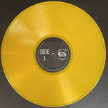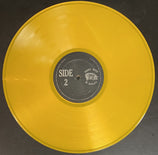 1970s gold and blue vinyl TMOQ 2-LP with stamped cover. Black labels with sideways pig logo. Silver TMOQ on front cover. 1/4" seam split at top edge at opening. Shallow crease at bottom right corner.