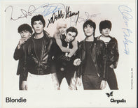 1978 original 8" x 10" black and white promo photo signed in black ink by Debbie Harry, Chris Stein and Frank Infante and in blue ink by Clem Burke and Jimmy Destri. From the Clem Burke collection and includes letter of provenance signed by Clem Burke. Infante's signature was acquired later. No Nigel Harrison. Includes Rockaway Records letter of authenticity.