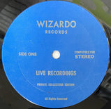 1975 LP featuring 1968 studio outtakes and live in Rome and Santa Monica in 1970. Orange insert glued to front cover, blue Wizardo labels. Foxing on front cover.