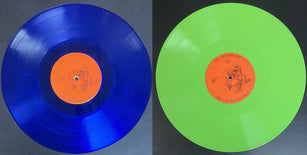 1983 blue vinyl and green vinyl Luxembourgian 2LP set with deluxe printed cover. This is the soundtrack from the film "Live At Pompeii." Discs have red custom labels on all four sides. Mild to moderate creasing and "foxing" on front and back cover. All four corners varying degrees of "pushed".