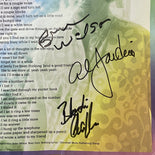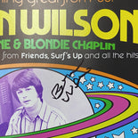 2019 lot of four items from the Brian Wilson tour wit the Zombies. Includes 12" x 12" promo poster signed in black marker by Brian Wilson, 8.5" x 11" "Busy Doin' Nothin'" printed lyric sheet signed in black marker by Brian Wilson, Al Jardine and Blondie Chaplin, 2.5" x 5.5" VIP pass and 14" x 15.5" cloth LP bag.