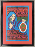 14" x 21" concert handbill for December 26-28, 1967 shows at San Francisco's Fillmore West featuring Doors, Chuck Berry, and Salvation and December 29 & 30 shows at the Winterland featuring Chuck Berry, Big Brother & The Holding Company, and Quicsilver Messenger Service (BG-99, 1st printing). Professionally matted and framed. Overall size 19.5" x 26.5".