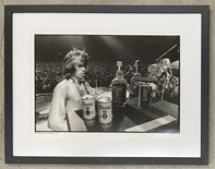 18" x 24" black and white photograph of 1970s-era Keith Richards on stage signed by noted photographer Ethan Russell (who sells these on his website for $5900). Professionally matted and framed. Overall size 24.5" x 31.5". A few small nicks in the frame at top center and bottom right.