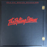 1984 MFSL box set of 11 half-speed mastered LPs. Includes booklet with "Satanic Majesties" lenticular on front, numbered envelope containing MFSL catalog, warranty card and "Beggars Banquet" poster offer card plus "Geodisc" turntable alignment tool. #0665 gold plate inside box door. 6 of the red covers have 1" partial seam splits on the spines. A few small nicks in the box.