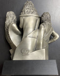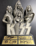 Original 1998 10" tall x 6.5" wide pewter figurine by Gartlan U.S.A. with four 1" x 3" gold plaques signed in black marker by Paul Stanley, Gene Simmons, Ace Frehley and Peter Criss. Includes Rockaway Records LOA.