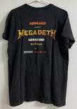 Original 1991 black concert t-shirt for the Kerrang! 10th Anniversary show at the Marquee in London. From the collection of Marty Friedman, Megadeth's lead guitarist from 1990-2000. Includes letter of provenance signed by Marty. Generic tag states size XL, 100% cotton. 21" pit-to-pit, 27" top of collar to hem.