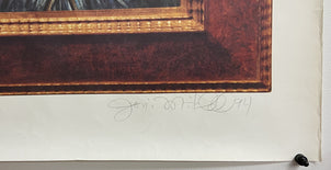 1994 26" x 32" limited edition promo lithograph signed in pencil by Joni Mitchell, who also dated it "94." Shallow 3" crease at top center edge. Mild wear along the edges, tiny spot at lower left edge. Includes Rockaway Records LOA.