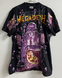 Original 1991 black tour t-shirt. From the collection of Marty Friedman, Megadeth's lead guitarist from 1990-2000. Includes letter of provenance signed by Marty. Brockum tag states size L, 100% cotton. 21" pit-to-pit, 28" top of collar to hem.