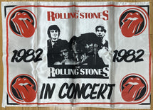 1982 European 23.25" x 33.25" synthetic silk banner from the Rolling Stones' 1982 European tour. This is from the collection of bassist Bill Wyman and includes Julien's Auction tag. Previously folded and will ship as such.